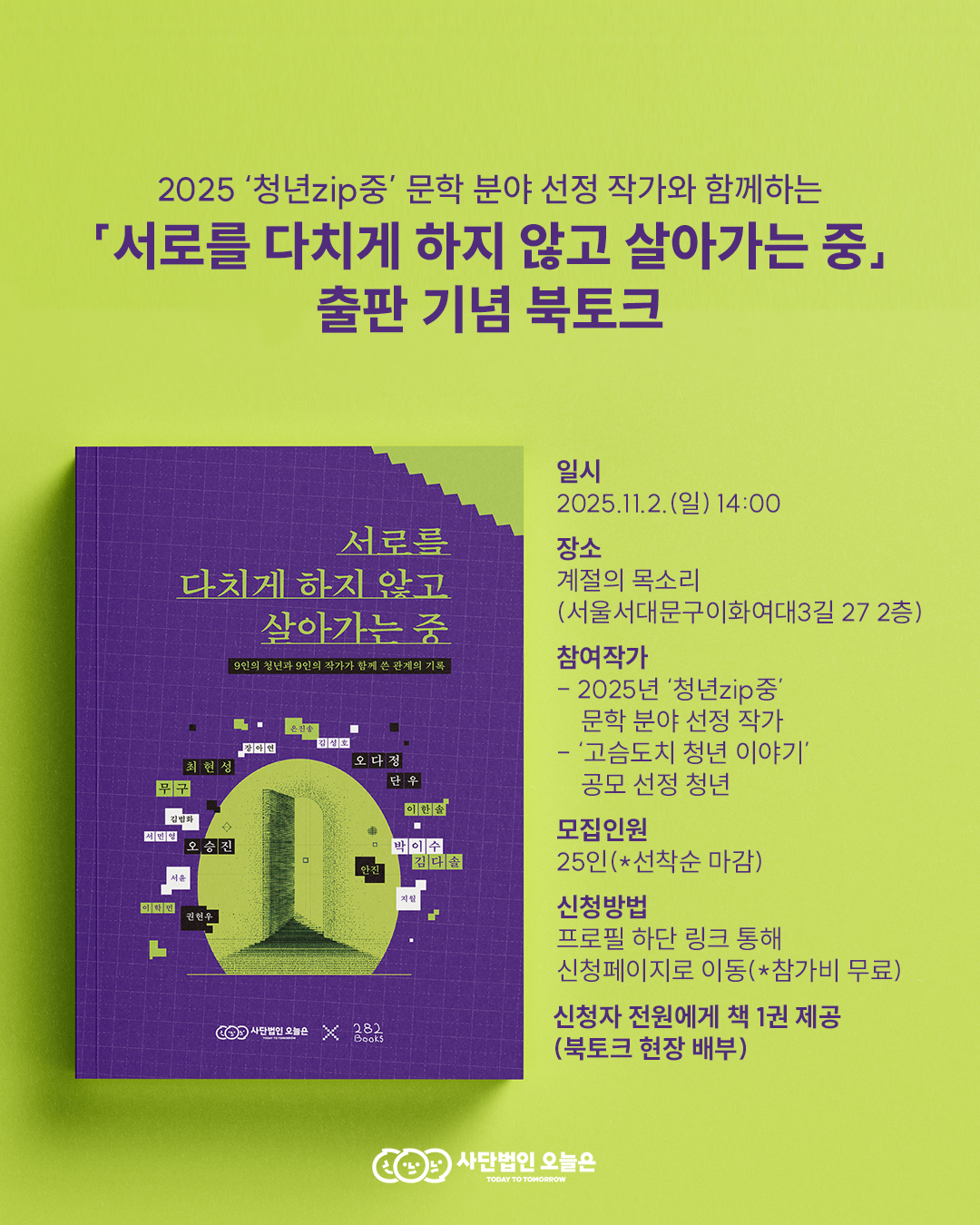 [청년zip중] 2025 문학 분야 「서로를 다치게 하지 않고 살아가는 중」출판 기념 북토크